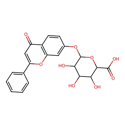 | CCSBASE_8CFEECB3C6 | 7-hydroxyflavone_met008 | [M+Na]+ | 437.0849 | 200.0 | C1=CC=C(C=C1)C2=CC(=O)C3=C(O2)C=C(C=C3)OC4C(C(C(C(O4)C(=O)O)O)O)O | Phenylpropanoids and polyketides | 1 | 25 | DT | single field, calibrated | |