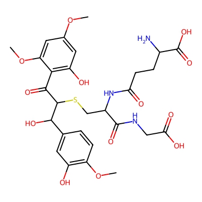 | CCSBASE_51383D7D7C | 2',3-dihydroxy-4,4',6'-trimethoxychalcone_met009 | [M+Na]+ | 676.1789 | 245.6 | COC1=C(C=C(C=C1)C(C(C(=O)C2=C(C=C(C=C2OC)OC)O)SCC(C(=O)NCC(=O)O)NC(=O)CCC(C(=O)O)N)O)O | Organic acids and derivatives | 1 | 25 | DT | single field, calibrated | |