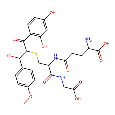 | CCSBASE_ABF915680A | 2',4'-dihydroxy-4-methoxychalcone_met025 | [M+Na]+ | 616.1577 | 235.2 | COC1=CC=C(C=C1)C(C(C(=O)C2=C(C=C(C=C2)O)O)SCC(C(=O)NCC(=O)O)NC(=O)CCC(C(=O)O)N)O | Organic acids and derivatives | 1 | 25 | DT | single field, calibrated | |