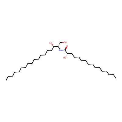 | CCSBASE_06f206941c59e97445bbc408ab650317 | 16:0(2S-OH) Ceramide | [M+Na]+ | 576.4962026 | 253.366666667 | CCCCCCCCCCCCCC[C@@H](C(=O)N[C@@H](CO)[C@@H](/C=C/CCCCCCCCCCCCC)O)O | Organic oxygen compounds | 1 | 27 | TIMS | calibrated with ESI Low Concentration Tuning Mix (Agilent) | |