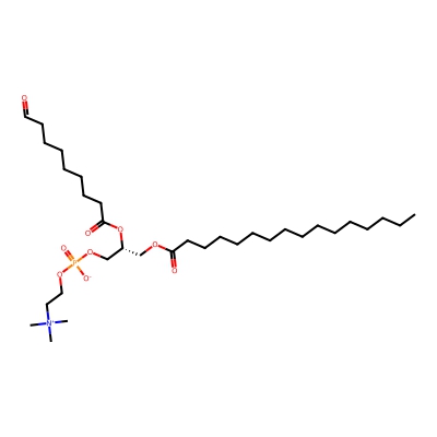 | CCSBASE_5422e7e18f96c8689b6ef112424932ff | 16:0-09:0 (ALDO) PC | [M+H]+ | 650.43912287 | 258.6 | CCCCCCCCCCCCCCCC(=O)OC[C@H](COP(=O)([O-])OCC[N+](C)(C)C)OC(=O)CCCCCCCC=O | Lipids and lipid-like molecules | 1 | 27 | TIMS | calibrated with ESI Low Concentration Tuning Mix (Agilent) | |