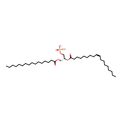 | CCSBASE_260d404a514bbcf57fc603b47890ed78 | 16:0-18:1 PA | [M+Na]+ | 697.47785 | 270.033333333 | CCCCCCCCCCCCCCCC(=O)OC[C@H](COP(=O)(O)O)OC(=O)CCCCCCC/C=C\CCCCCCCC | Lipids and lipid-like molecules | 1 | 27 | TIMS | calibrated with ESI Low Concentration Tuning Mix (Agilent) | |