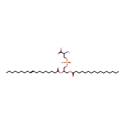 | CCSBASE_c0f883986432dcbaa4c7f9429e5f8692 | 16:0-18:1 PS (POPS) | [M+Na]+ | 784.509877 | 283.7 | CCCCCCCCC=CCCCCCCCC(=O)OC(COC(=O)CCCCCCCCCCCCCCC)COP(=O)(O)OCC(N)C(=O)[O-] | None | 1 | 27 | TIMS | calibrated with ESI Low Concentration Tuning Mix (Agilent) |