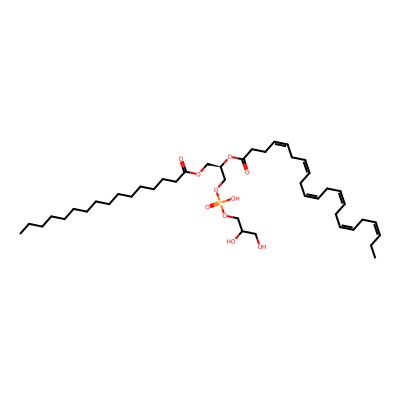 | CCSBASE_59e13ff88afdce9affed3088761d916a | 16:0-20:4 PG | [M-H]- | 769.502482 | 278.7 | CCCCCCCCCCCCCCCC(=O)OC[C@H](COP(=O)(O)OCC(CO)O)OC(=O)CCC/C=C\C/C=C\C/C=C\C/C=C\CCCCC | Lipids and lipid-like molecules | -1 | 27 | TIMS | calibrated with ESI Low Concentration Tuning Mix (Agilent) | |