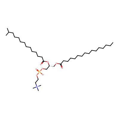 | CCSBASE_1eaa4082e55a7d0e0c3a17174037adc4 | 16:0-i15:0 PC | [M+HCOO]- | 764.544679 | 287.433333333 | CCCCCCCCCCCCCCCC(=O)OC[C@H](COP(=O)([O-])OCC[N+](C)(C)C)OC(=O)CCCCCCCCCCCC(C)C | Lipids and lipid-like molecules | -1 | 27 | TIMS | calibrated with ESI Low Concentration Tuning Mix (Agilent) | |