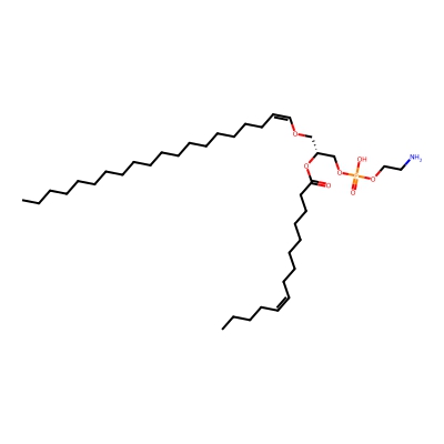 | CCSBASE_068AB42683 | PE(p34:1) | [M-H]- | 700.527 | 262.1 | CCCCCCCCCCCCCCCCCC/C=C\OC[C@H](COP(=O)(O)OCCN)OC(=O)CCCCCCC/C=C\CCCC | Lipids and lipid-like molecules | -1 | 5 | TW | calibrated with phosphatidylcholines (ESI+) and phosphatidylethanolamines (ESI-) | |