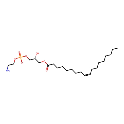 | CCSBASE_fdaa710fe5702bed637e21e2e5b73f01 | 18:1 Lyso PE | [M-H]- | 478.2938976 | 215.833333333 | CCCCCCCC/C=C\CCCCCCCC(=O)OC[C@H](COP(=O)([O-])OCC[NH3+])O | Lipids and lipid-like molecules | -1 | 27 | TIMS | calibrated with ESI Low Concentration Tuning Mix (Agilent) | |