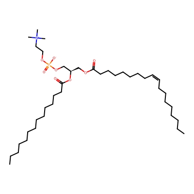 | CCSBASE_5a0c9fece8da6bdd1718abc76f5d5e10 | 18:1-14:0 PC | [M+HCOO]- | 776.544679 | 288.2 | CCCCCCCCCCCCCC(=O)O[C@H](COC(=O)CCCCCCC/C=C\CCCCCCCC)COP(=O)([O-])OCC[N+](C)(C)C | Lipids and lipid-like molecules | -1 | 27 | TIMS | calibrated with ESI Low Concentration Tuning Mix (Agilent) | |