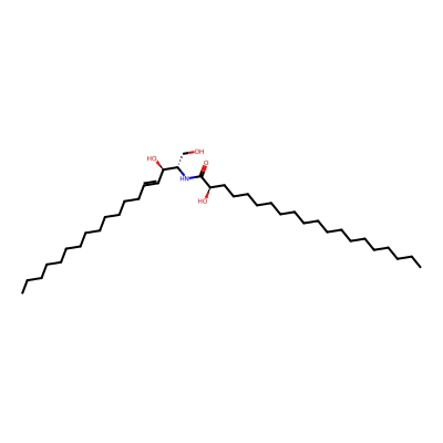 | CCSBASE_ce5d91f73ef186c0536f90e460954be9 | 20:0(2R-OH) Ceramide | [M+Na]+ | 632.5587994 | 269.2 | CCCCCCCCCCCCCCCCCC[C@H](C(=O)N[C@@H](CO)[C@@H](/C=C/CCCCCCCCCCCCC)O)O | Lipids and lipid-like molecules | 1 | 27 | TIMS | calibrated with ESI Low Concentration Tuning Mix (Agilent) | |