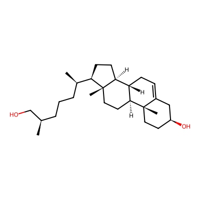 | CCSBASE_fa09e82939b6c83b2e7f2189b6a931c1 | 27-hydroxycholesterol | [M+H-H2O]+ | 385.3464674 | 193.333333333 | C[C@H](CCC[C@@H](C)[C@H]1CC[C@@H]2[C@@]1(CC[C@H]3[C@H]2CC=C4[C@@]3(CC[C@@H](C4)O)C)C)CO | Lipids and lipid-like molecules | 1 | 27 | TIMS | calibrated with ESI Low Concentration Tuning Mix (Agilent) | |