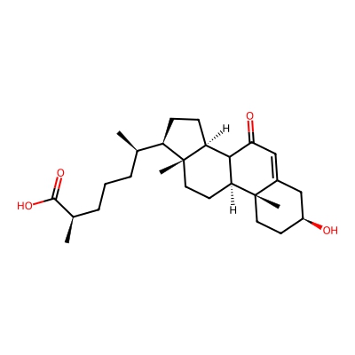 | CCSBASE_22ddeaf05b01107081c4a373e2a134af | 3beta-hydroxy-7-oxo-5-cholestenoic acid | [M-H]- | 429.3010172 | 213.633333333 | C[C@H](CCC[C@@H](C)C(=O)O)[C@H]1CC[C@@H]2[C@@]1(CC[C@H]3C2C(=O)C=C4[C@@]3(CC[C@@H](C4)O)C)C | Lipids and lipid-like molecules | -1 | 27 | TIMS | calibrated with ESI Low Concentration Tuning Mix (Agilent) | |