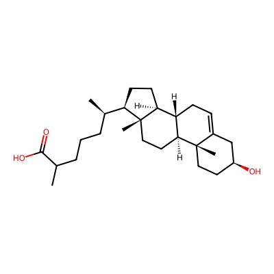 | CCSBASE_ce39ac6a59636efb1588edee20c40a99 | 3b-hydroxy-5-cholestenoic acid | [M-H]- | 415.3217514 | 213.566666667 | C[C@H](CCCC(C)C(=O)O)[C@H]1CC[C@@H]2[C@@]1(CC[C@H]3[C@H]2CC=C4[C@@]3(CC[C@@H](C4)O)C)C | Lipids and lipid-like molecules | -1 | 27 | TIMS | calibrated with ESI Low Concentration Tuning Mix (Agilent) | |