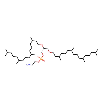 | CCSBASE_f39d9fb4a5a70d9d2faf6aa9b3d4baba | 4ME 16:0 Diether PE | [M-H]- | 774.6745634 | 287.066666667 | [H][C@@](COP([O-])(OCC[NH3+])=O)(OCCC(C)CCCC(C)CCCC(C)CCCC(C)C)COCCC(C)CCCC(C)CCCC(C)CCCC(C)C | Lipids and lipid-like molecules | -1 | 27 | TIMS | calibrated with ESI Low Concentration Tuning Mix (Agilent) | |