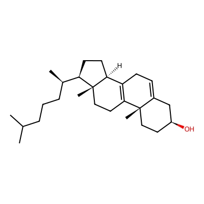 | CCSBASE_b9514a927bb4a5b33eff2a874c91f208 | 8(14)-dehydrocholesterol | [M+Na]+ | 407.3284178 | 222.8 | C[C@H](CCCC(C)C)[C@H]1CC[C@@H]2[C@@]1(CCC3=C2CC=C4[C@@]3(CC[C@@H](C4)O)C)C | Lipids and lipid-like molecules | 1 | 27 | TIMS | calibrated with ESI Low Concentration Tuning Mix (Agilent) |