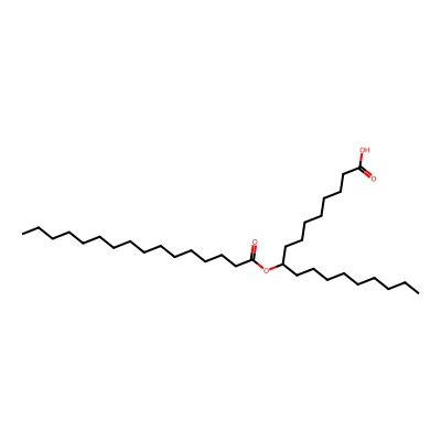 | CCSBASE_409142a238db8f229b59fe26718eadb0 | 9-PAHSA | [M+H-H2O]+ | 521.4927894 | 256.333333333 | CCCCCCCCCCCCCCCC(=O)OC(CCCCCCCCC)CCCCCCCC(=O)O | Lipids and lipid-like molecules | 1 | 27 | TIMS | calibrated with ESI Low Concentration Tuning Mix (Agilent) | |