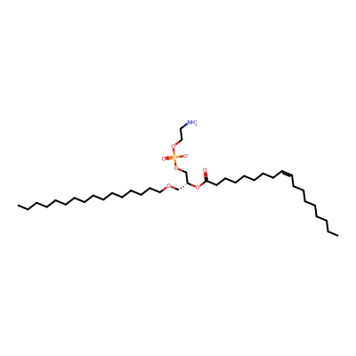| CCSBASE_bcd3565aec67401e9a1e6d577ca269fd | C16-18:1 PE | [M-H]- | 702.5442848 | 267.066666667 | CCCCCCCCCCCCCCCCOC[C@H](COP(=O)([O-])OCC[NH3+])OC(=O)CCCCCCC/C=C\CCCCCCCC | Lipids and lipid-like molecules | -1 | 27 | TIMS | calibrated with ESI Low Concentration Tuning Mix (Agilent) | |