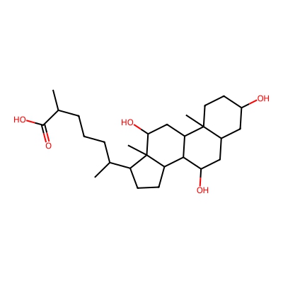 | CCSBASE_50e2f6bcdc132200b2aa7b54f6b24d69 | trihydroxycholestanoic acid | [M+NH4]+ | 468.3683304 | 210.333333333 | CC(CCCC(C)C1CCC2C3C(O)CC4CC(O)CCC4(C)C3CC(O)C12C)C(=O)O | None | 1 | 27 | TIMS | calibrated with ESI Low Concentration Tuning Mix (Agilent) | |