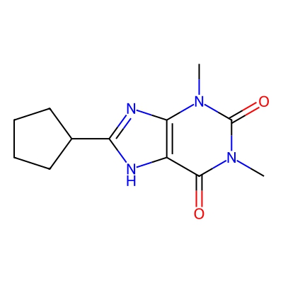 | CCSBASE_431AAA67D3 | 8-CYCLOPENTYLTHEOPHYLLINE | [M+H]+ | 249.1346 | 158.6 | CN1C2=C(C(=O)N(C1=O)C)NC(=N2)C3CCCC3 | Organoheterocyclic compounds | 1 | 7 | TW | calibrated with polyalanine and drug standards | |