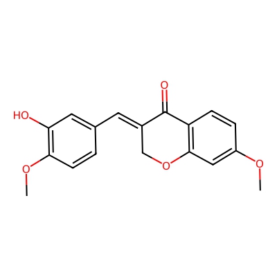 | CCSBASE_6A39D8AC40 | SAPPANONE A DIMETHYL ETHER | [M+H]+ | 313.1071 | 170.3 | COC1=CC2=C(C=C1)C(=O)/C(=C/C3=CC(=C(C=C3)OC)O)/CO2 | Phenylpropanoids and polyketides | 1 | 7 | TW | calibrated with polyalanine and drug standards | |