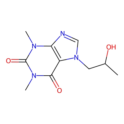 | CCSBASE_D46F6761C1 | PROXYPHYLLINE | [M+H]+ | 239.1139 | 149.1 | CC(CN1C=NC2=C1C(=O)N(C(=O)N2C)C)O | Organoheterocyclic compounds | 1 | 7 | TW | calibrated with polyalanine and drug standards | |