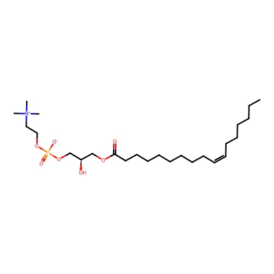 | CCSBASE_158968BE70 | LPC(18:0) | [M+H]+ | 524.3716 | 237.9 | CCCCCCCCCCCCCCCCCC(=O)OC[C@H](COP(=O)([O-])OCC[N+](C)(C)C)O | Lipids and lipid-like molecules | 1 | 9 | DT | single field, calibrated with Agilent tune mix (Agilent) | |