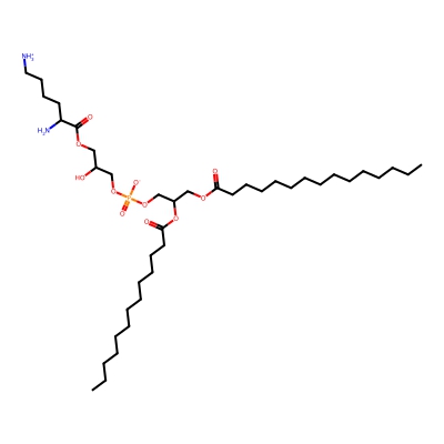 | CCSBASE_F34361B4C4 | LysPG(28:0) | [M+H]+ | 795.55 | 284.7 | CCCCCCCCCCCCCCC(=O)OCC(COP(=O)([O-])OCC(COC(=O)C(CCCC[NH3+])N)O)OC(=O)CCCCCCCCCCCC | Lipids and lipid-like molecules | 1 | 11 | TW | calibrated with phosphatidylcholines (ESI+) and phosphatidylethanolamines (ESI-) |