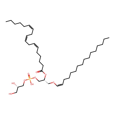 | CCSBASE_15D0C7031F | PG(p34:1) | [M-H]- | 731.523 | 268.6 | CCCCCCCCCCCCCCCC/C=C\OC[C@H](COP(=O)(O)OC[C@H](CO)O)OC(=O)CCCCCCC/C=C\CCCCCC | Lipids and lipid-like molecules | -1 | 11 | TW | calibrated with phosphatidylcholines (ESI+) and phosphatidylethanolamines (ESI-) | |