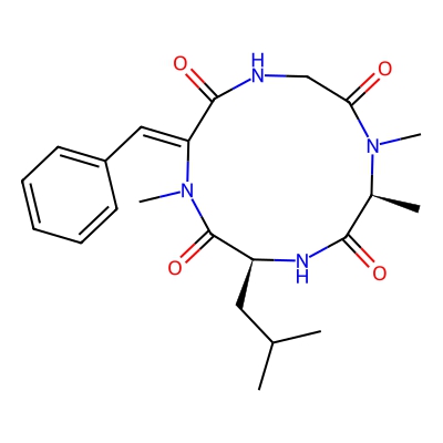 | CCSBASE_3D85B9EA51 | Tentoxin | [M+H]+ | 415.234 | 202.0 | C[C@H]1C(=O)N[C@H](C(=O)N(/C(=C\C2=CC=CC=C2)/C(=O)NCC(=O)N1C)C)CC(C)C | Organic acids and derivatives | 1 | 14 | TW | calibrated with polyalanine |