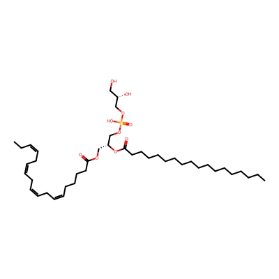 | CCSBASE_589F22A887 | PG(36:4) | [M-H]- | 769.5024799999999 | 278.0 | CCCCCCCCCCCCCCCCCC(=O)O[C@H](COC(=O)CCCC/C=C\C/C=C\C/C=C\C/C=C\CC)COP(=O)(O)OC[C@H](CO)O | Lipids and lipid-like molecules | -1 | 3 | DT | stepped-field | |