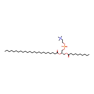 | CCSBASE_631C43891A | PC(34:00) | [M+2Na-H]+ | 806.5644 | 286.12 | CCCCCCCCCCCCCCCCCCCCCCCC(=O)O[C@H](COC(=O)CCCCCCCCC)COP(=O)([O-])OCC[N+](C)(C)C | Lipids and lipid-like molecules | 1 | 18 | DT | stepped-field | |