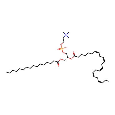 | CCSBASE_4948490149 | PC(36:02) | [M+Cl]- | 820.5635 | 295.12 | CCCCCCCCCCCCCCCCCC(=O)OC[C@H](COP(=O)([O-])OCC[N+](C)(C)C)OC(=O)CCCCCCCC/C=C\C=C/CCCCC | None | -1 | 18 | DT | stepped-field | |