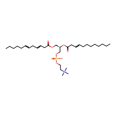 | CCSBASE_476FC3C031 | PC(24:1) | [M+H]+ | 620.435 | 242.26 | CCCCCCCCC=CCC(=O)O[C@H](COC(=O)CC=CCC=CCCCCC)COP(=O)(O)OCC[N+](C)(C)C | Lipids and lipid-like molecules | 1 | 19 | DT | single field | |
