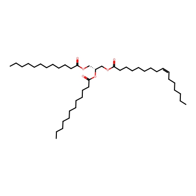 | CCSBASE_E50D504859 | TG(40:1) | [M+Na]+ | 715.5846 | 280.45 | CCCCCCCCCCCC(=O)OC[C@H](COC(=O)CCCCCCC/C=C\CCCCCC)OC(=O)CCCCCCCCCCC | Lipids and lipid-like molecules | 1 | 19 | DT | single field | |