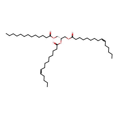 | CCSBASE_D3E600931A | TG(42:2) | [M+Na]+ | 741.6 | 285.72 | CCCCCCCCCCCCC(=O)OC[C@H](COC(=O)CCCCCCC/C=C\CCCCC)OC(=O)CCCCCCC/C=C\CCCC | Lipids and lipid-like molecules | 1 | 19 | DT | single field | |