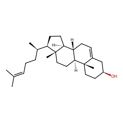 | CCSBASE_148C38CC85 | 22beta-Hydroxycholesterol | [M+H-H2O]+ | 385.347 | 205.2 | C[C@@H]([C@H]1CC[C@@H]2[C@@]1(CC[C@H]3[C@H]2CC=C4[C@@]3(CC[C@@H](C4)O)C)C)[C@@H](CCC(C)C)O | Lipids and lipid-like molecules | 1 | 4 | DT | single field, calibrated with Agilent tune mix (Agilent) | |