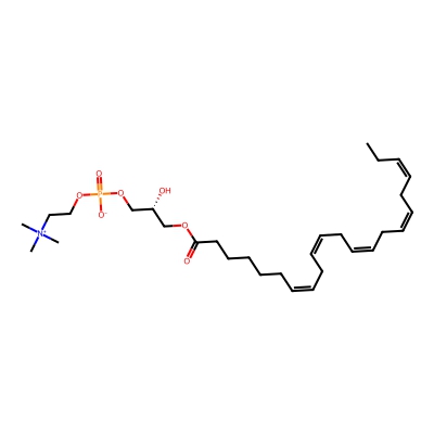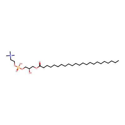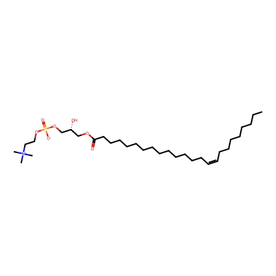 | CCSBASE_CA3FC5F3E1 | LPC(23:0) | [M+CH3COO]- | 652.445 | 257.57 | CCCCCCCCCCCCCCCCCCCCCCC(=O)OC[C@H](COP(=O)(O)OCC[N+](C)(C)C)O | None | -1 | 20 | TIMS | single field, calibrated | |