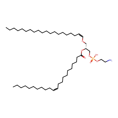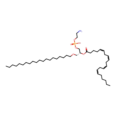 | CCSBASE_15F11D5B1D | PE(o42:2) | [M+H]+ | 814.672 | 298.35 | CCCCCCCCCCCCCCCCCC/C=C\OC[C@H](COP(=O)(O)OCCN)OC(=O)CCCCCCCCC/C=C\CCCCCCCCCC | Lipids and lipid-like molecules | 1 | 20 | TIMS | single field, calibrated | |