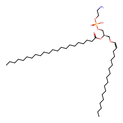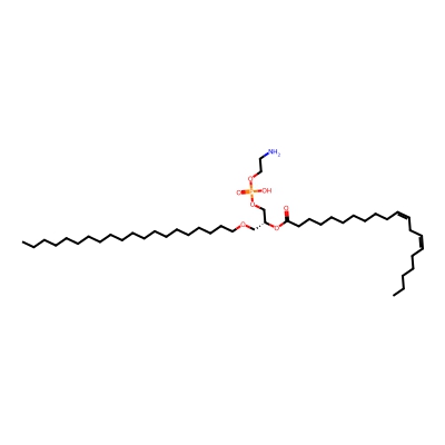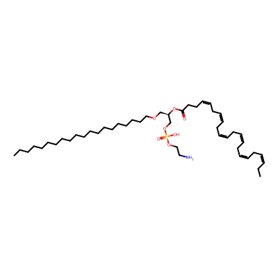 | CCSBASE_26DEC36E3B | PE(o40:2) | [M+H]+ | 786.636 | 286.54 | CCCCCCCCCCCCCCCCCCCCOC[C@H](COP(=O)(O)OCCN)OC(=O)CCCCCCCCC/C=C\C/C=C\CCCCC | Lipids and lipid-like molecules | 1 | 20 | TIMS | single field, calibrated | |