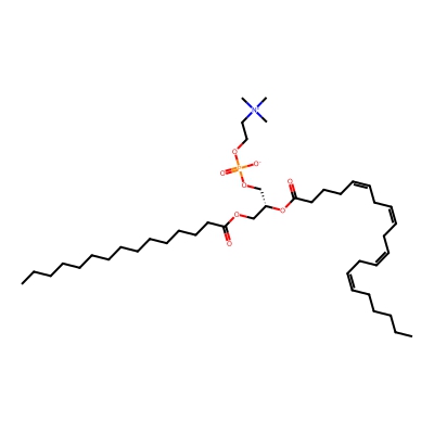 | CCSBASE_D11F35B31C | PC(15:0/20:4) | [M+H]+ | 768.553 | 284.96 | [C@](COP(=O)([O-])OCC[N+](C)(C)C)([H])(OC(CCC/C=C\C/C=C\C/C=C\C/C=C\CCCCC)=O)COC(CCCCCCCCCCCCCC)=O | Lipids and lipid-like molecules | 1 | 20 | TIMS | single field, calibrated | |