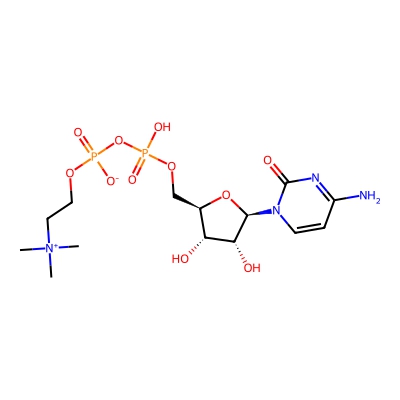 | CCSBASE_66E1B331FF | Cytidine 5'-diphosphocholine | [M+H]+ | 489.1151 | 197.6 | C[N+](C)(C)CCOP(=O)([O-])OP(=O)(O)OC[C@@H]1[C@H]([C@H]([C@@H](O1)N2C=CC(=NC2=O)N)O)O | Nucleosides, nucleotides, and analogues | 1 | 4 | DT | single field, calibrated with Agilent tune mix (Agilent) |