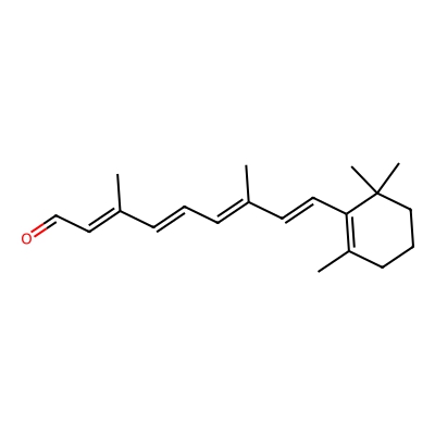 | CCSBASE_85D5321682 | Retinene | [M+H]+ | 285.2218 | 170.1 | CC1=C(C(CCC1)(C)C)/C=C/C(=C/C=C/C(=C/C=O)/C)/C | Lipids and lipid-like molecules | 1 | 4 | DT | single field, calibrated with Agilent tune mix (Agilent) | |