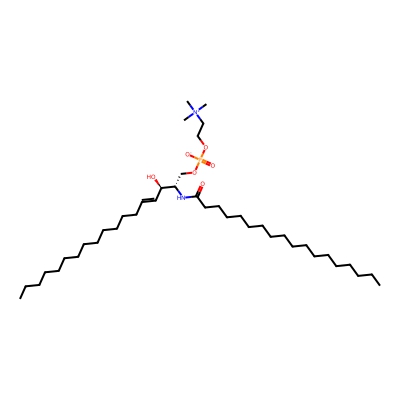 | CCSBASE_29112181A5 | SM(d18:1/18:0) | [M+H]+ | 731.6067 | 290.2 | O(P(=O)(OC[C@]([H])(NC(=O)CCCCCCCCCCCCCCCCC)[C@]([H])(O)/C=C/CCCCCCCCCCCCC)[O-])CC[N+](C)(C)C | Lipids and lipid-like molecules | 1 | 4 | DT | single field, calibrated with Agilent tune mix (Agilent) | |