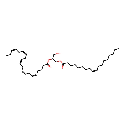 | CCSBASE_3F533BE85E | DG(18:1/22:6) | [M+NH4]+ | 684.555 | 265.63 | OC[C@]([H])(OC(CC/C=C\C/C=C\C/C=C\C/C=C\C/C=C\C/C=C\CC)=O)COC(CCCCCCC/C=C\CCCCCCCC)=O | Lipids and lipid-like molecules | 1 | 20 | TIMS | single field, calibrated | |