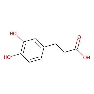 | CCSBASE_E8584DB960 | 3,4-Dihydroxyhydrocinnamic acid | [M-H]- | 181.0501 | 133.0474967 | C1=CC(=C(C=C1CCC(=O)O)O)O | small molecule | 1 | 4 | DT | single field, calibrated with Agilent tune mix (Agilent) | |