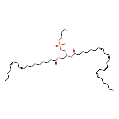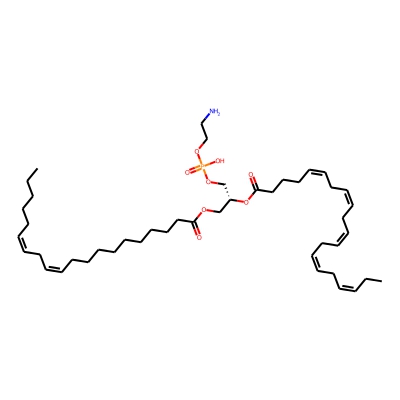 | CCSBASE_43BF53E496 | PE(39:4) | [M+Na]+ | 804.55 | 292.8 | [C@](COP(=O)(O)OCCN)([H])(OC(CCCCC/C=C\C/C=C\C/C=C\C/C=C\CCCCC)=O)COC(CCCCCCCCCCCCCCCC)=O | lipid | 1 | 1 | DT | stepped-field | |