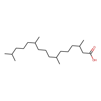 | CCSBASE_E02A9BFD6C | Phytanic acid | [M-H]- | 311.295 | 183.1718193 | CC(C)CCCC(C)CCCC(C)CCCC(C)CC(=O)O | small molecule | 1 | 4 | DT | single field, calibrated with Agilent tune mix (Agilent) | |