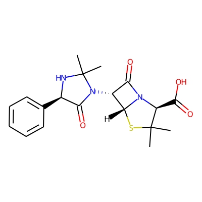 | CCSBASE_5A988EF5C3 | Hetacillin | [M+H]+ | 390.1487 | 189.4 | CC1([C@@H](N2[C@H](S1)[C@@H](C2=O)N3C(=O)[C@H](NC3(C)C)C4=CC=CC=C4)C(=O)O)C | small molecule | 1 | 26 | DT | single field, calibrated | |