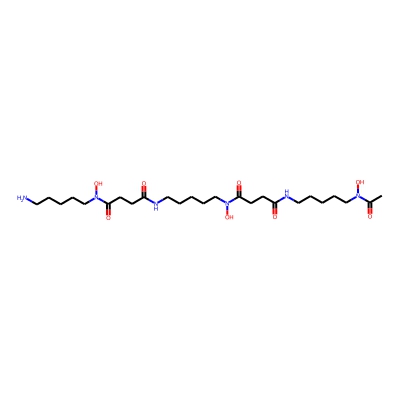 | CCSBASE_2A06665EEA | Deferoxamine | [M+Na]+ | 583.3432 | 228.9 | CC(=O)N(CCCCCNC(=O)CCC(=O)N(CCCCCNC(=O)CCC(=O)N(CCCCCN)O)O)O | small molecule | 1 | 26 | DT | single field, calibrated | |