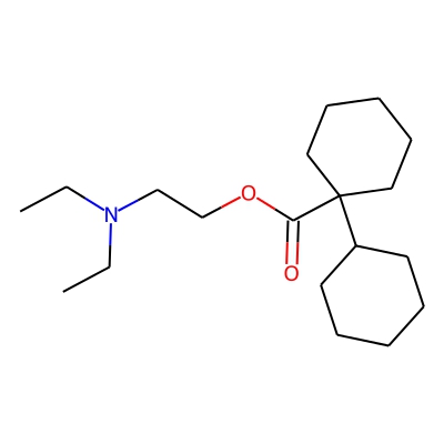 | CCSBASE_140AC11515 | Dicyclomine | [M+Na]+ | 332.2566 | 185.4 | CCN(CC)CCOC(=O)C1(CCCCC1)C2CCCCC2 | small molecule | 1 | 26 | DT | single field, calibrated | |