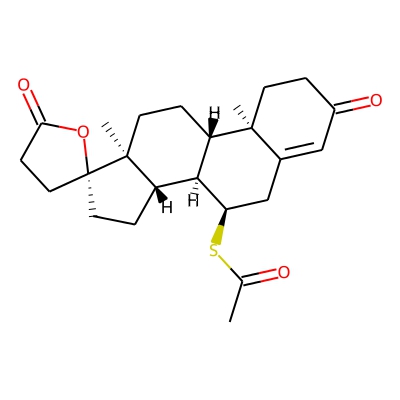 | CCSBASE_864D7D0B9A | Spironolactone | [M+K]+ | 455.1658 | 196.6 | CC(=O)S[C@@H]1CC2=CC(=O)CC[C@@]2([C@@H]3[C@@H]1[C@@H]4CC[C@]5([C@]4(CC3)C)CCC(=O)O5)C | small molecule | 1 | 26 | DT | single field, calibrated | |